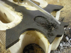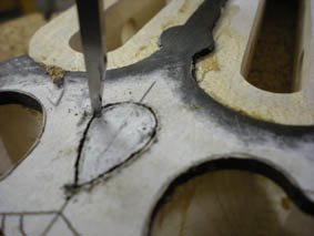 dopo aver inciso il contorno si inizia con lo svuotamento della parte che dovrà accogliere la goccia